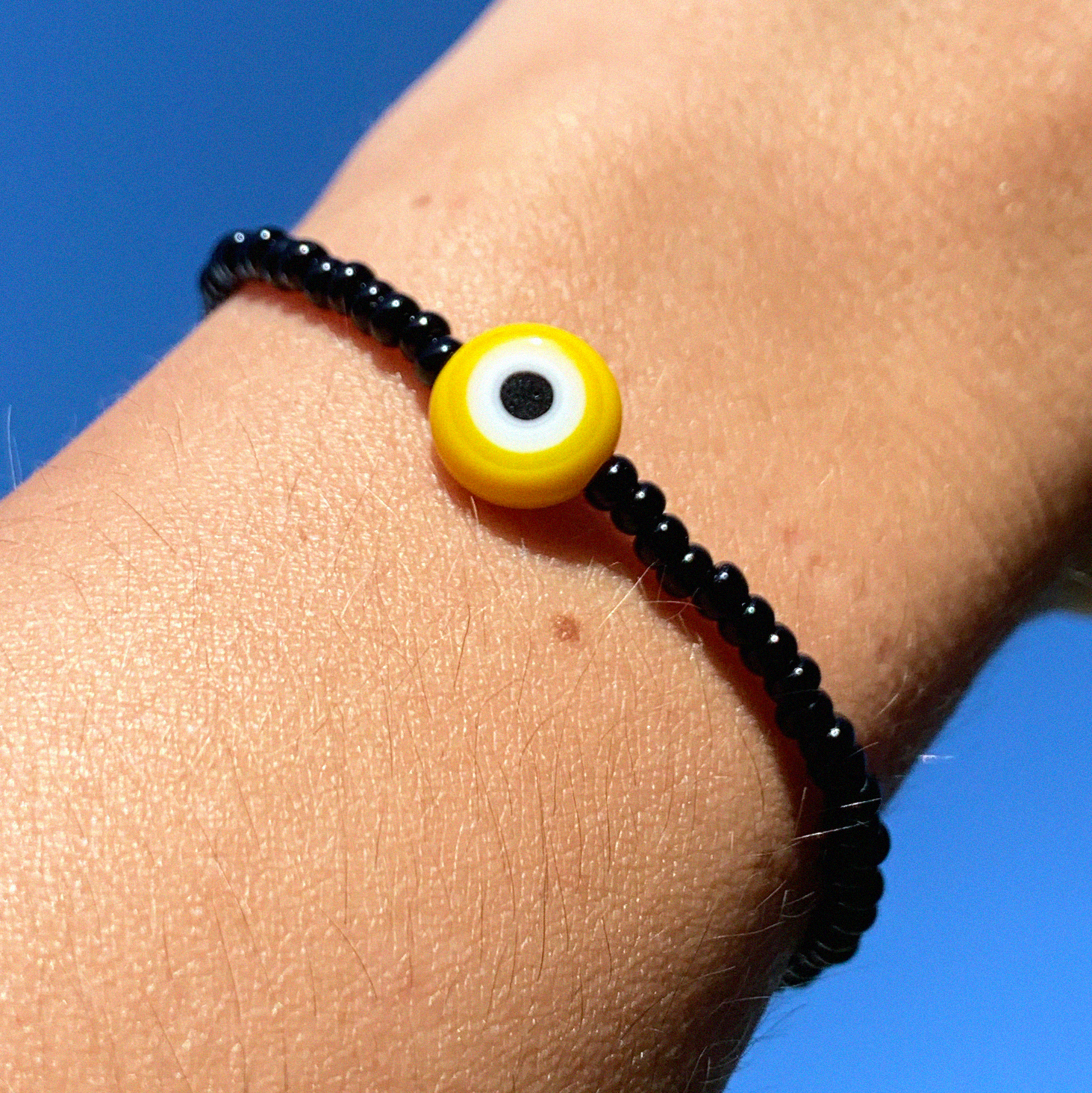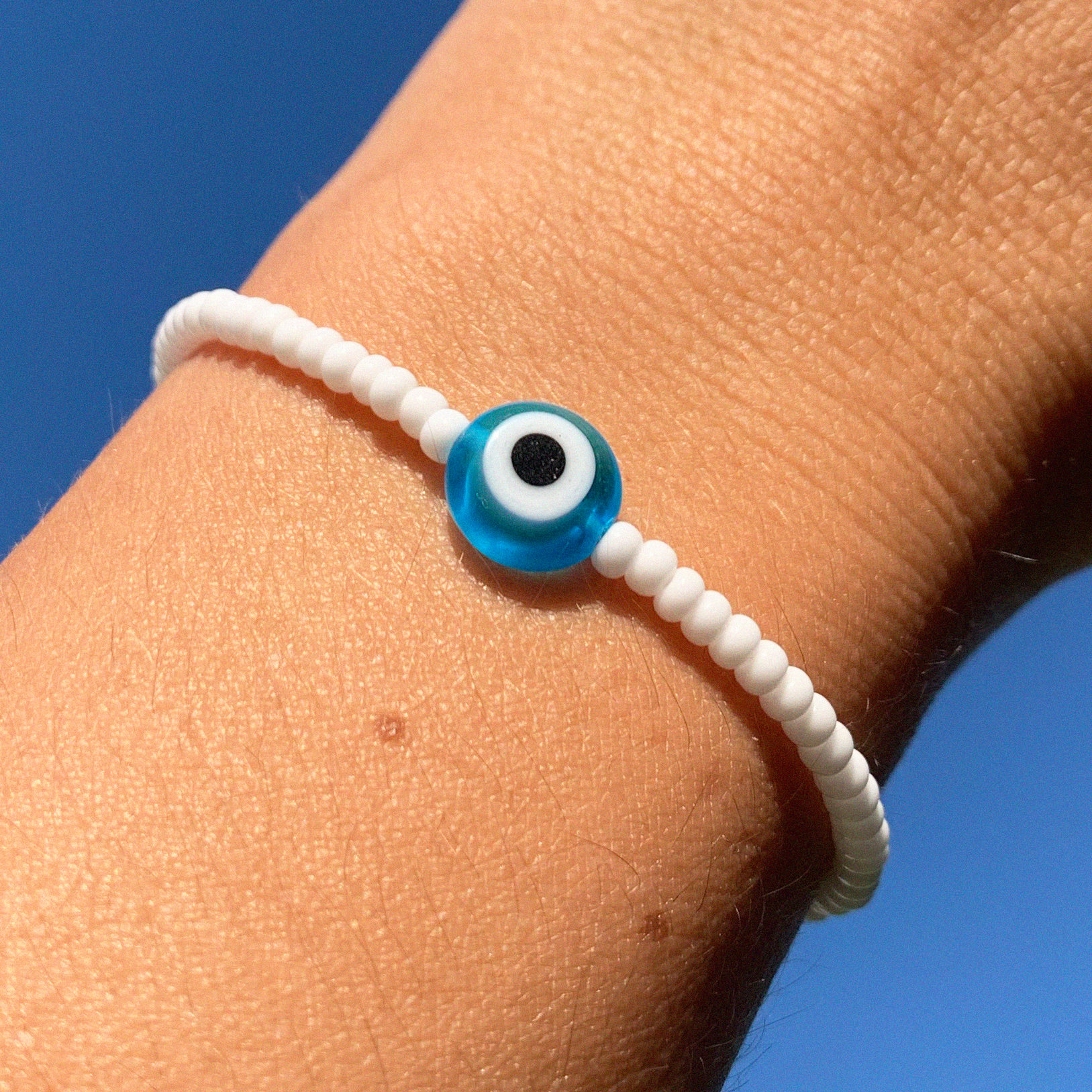 Choose from a black or white chain with your choice of colored glass Evil Eye bead.